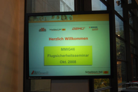 First Safety Seminar for Pilots in Schwäbisch Hall with international participation On the weekend of 10th - 12th October, 2008 some 50 pilots and aircraft owners attended a safety seminar for pilots in Schwäbisch Hall.